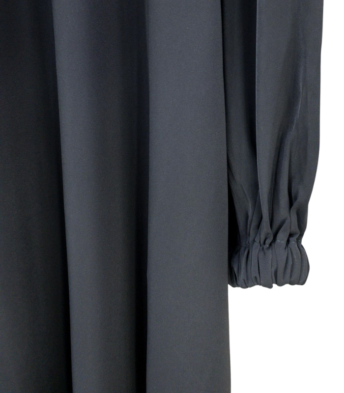 Cutting longgar dan flowy membuat gamis ini nyaman dipakai berbagai bentuk tubuh. LD besar memberikan ruang gerak yang lega, sehingga tidak terasa sesak dan tetap stylish. Siluetnya yang sederhana namun classy membuat penampilan terlihat lebih tinggi dan anggun saat dikenakan.